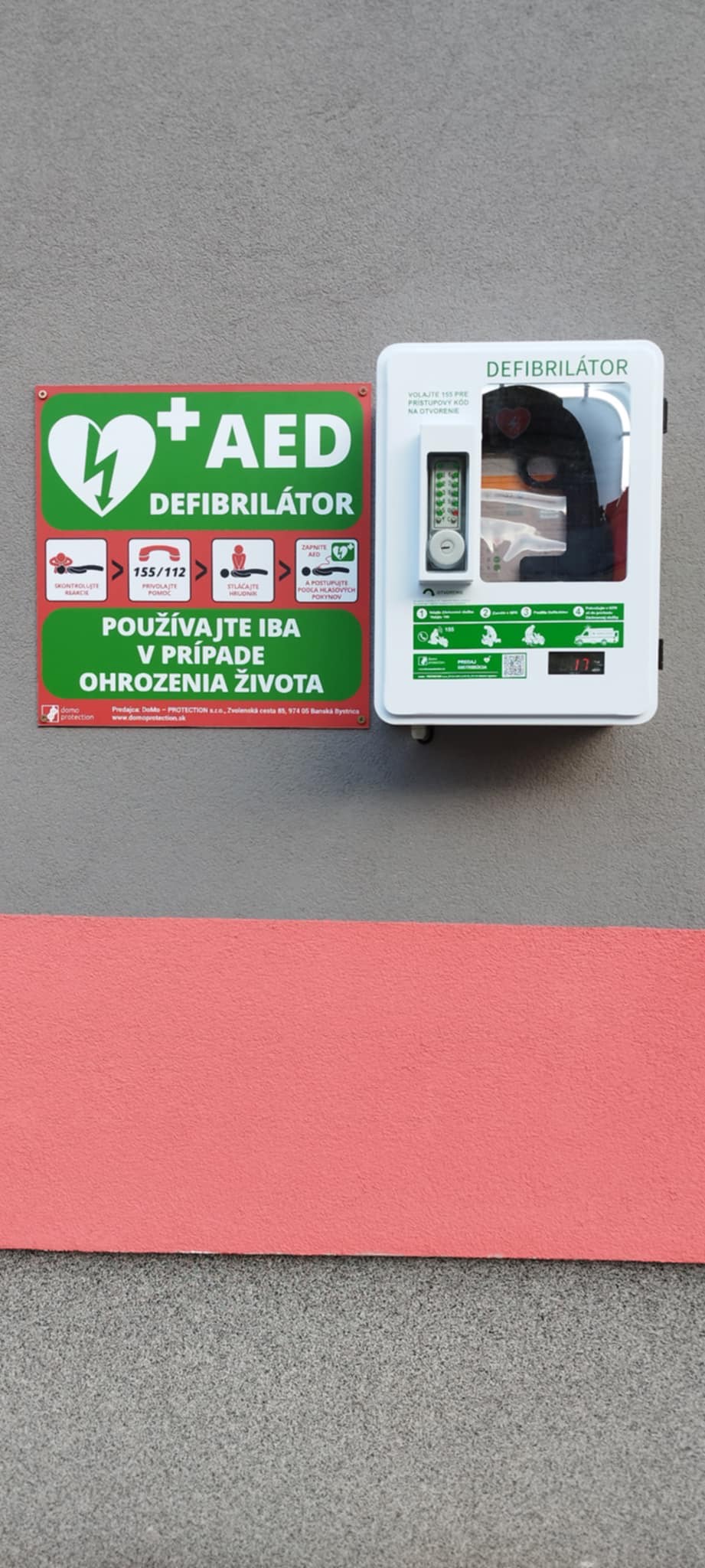 Je dôležité zdôrazniť, že akékoľvek zneužitie alebo poškodenie prístroja sa prísne trestá. Defibrilátor je k dispozícii 24 hodín denne a je monitorovaný kamerovým systémom.